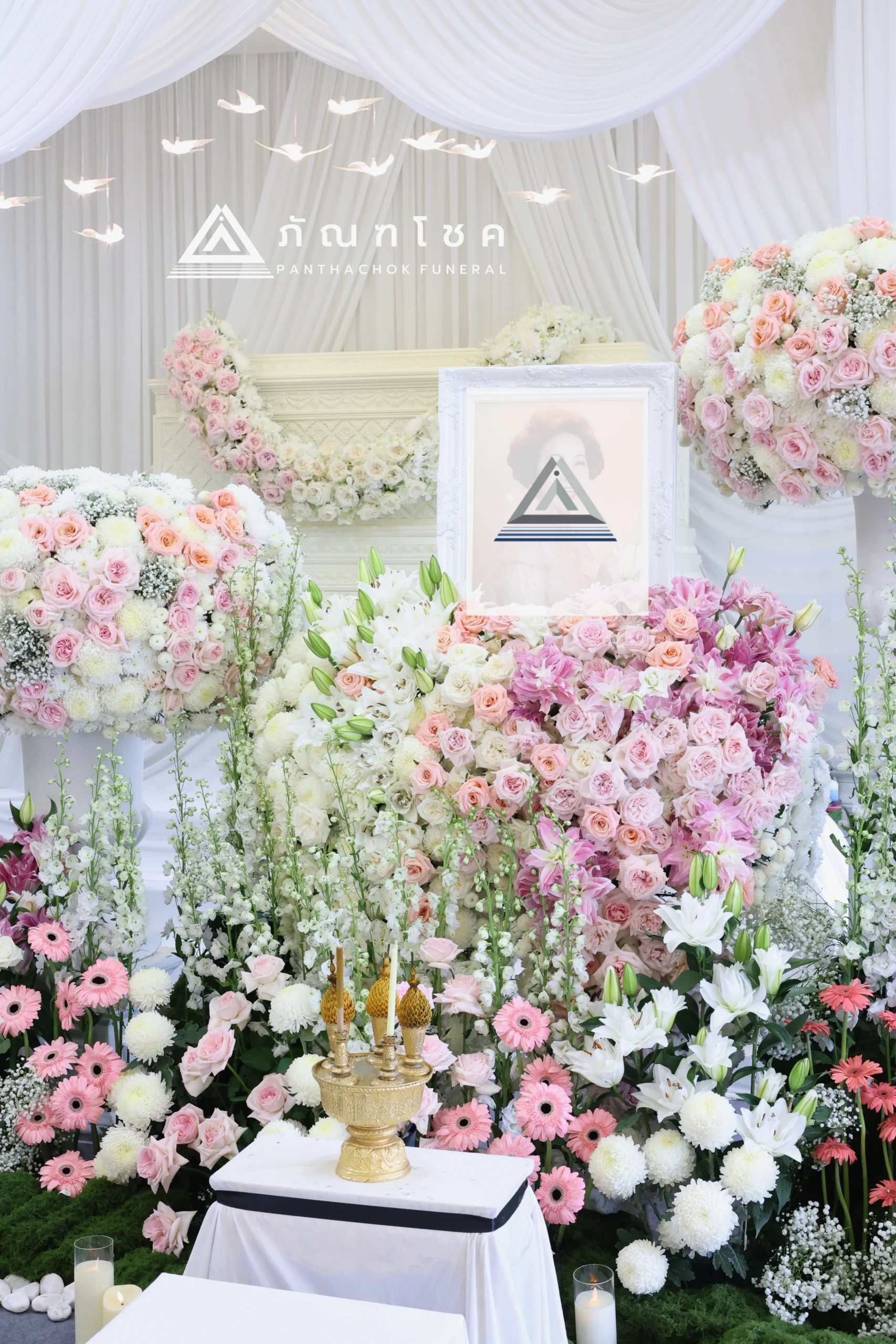 ดอกไม้หน้าศพ โทนสีขาวสะอาดตา